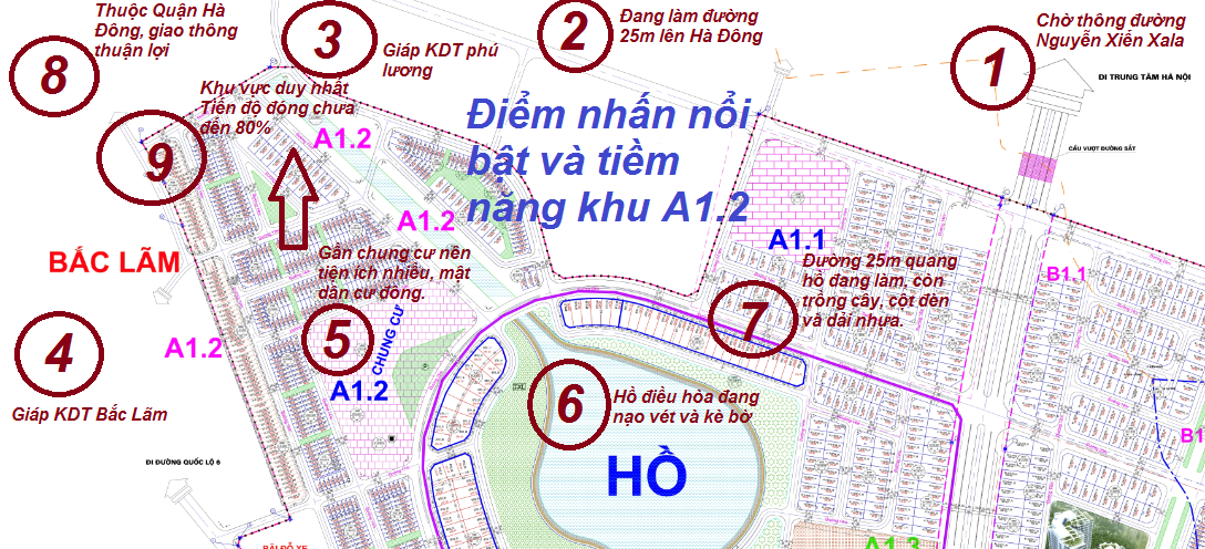 + Gần hồ điều hòa, chung cư, ngay đầu dự án. Tiếp giáp dự án khu đô thị Phú lương và Bắc Lãm. Hồ điều hòa đang hoàn thiện, hai trục đường 25m đang thi công. Cơ sở hạ tầng đang được hoàn thiện. Vào tên đóng 60%. Xuống tiền ít, điểm nhấn nhiều, tiềm năng tương lai lớn. Cơ hội tuyệt vời để đầu tư, kinh doanh và sinh sống.